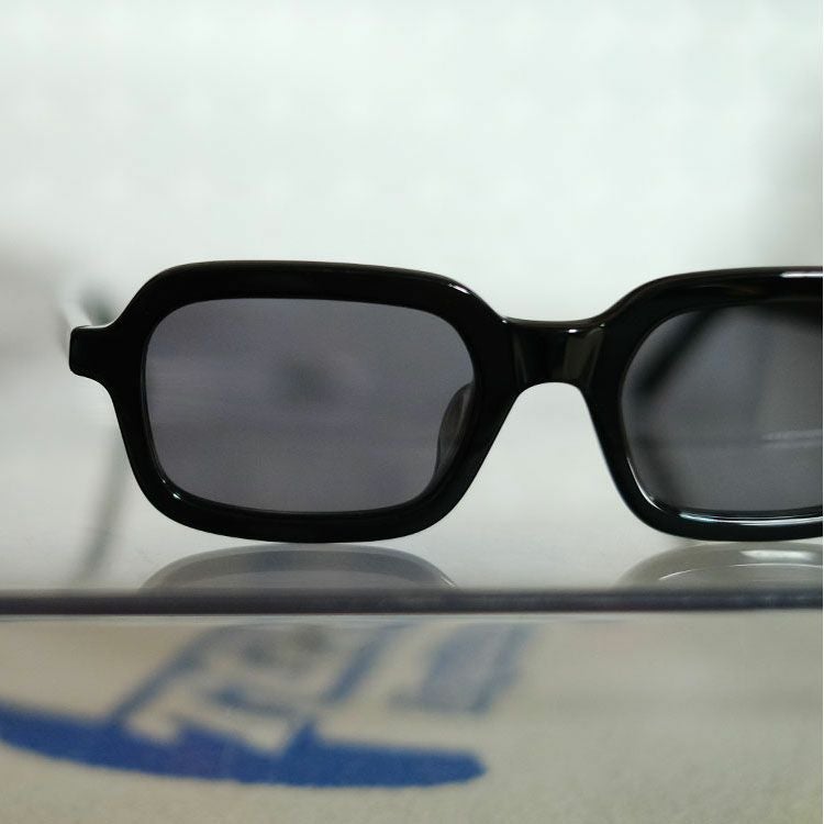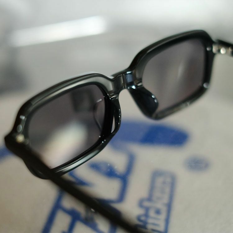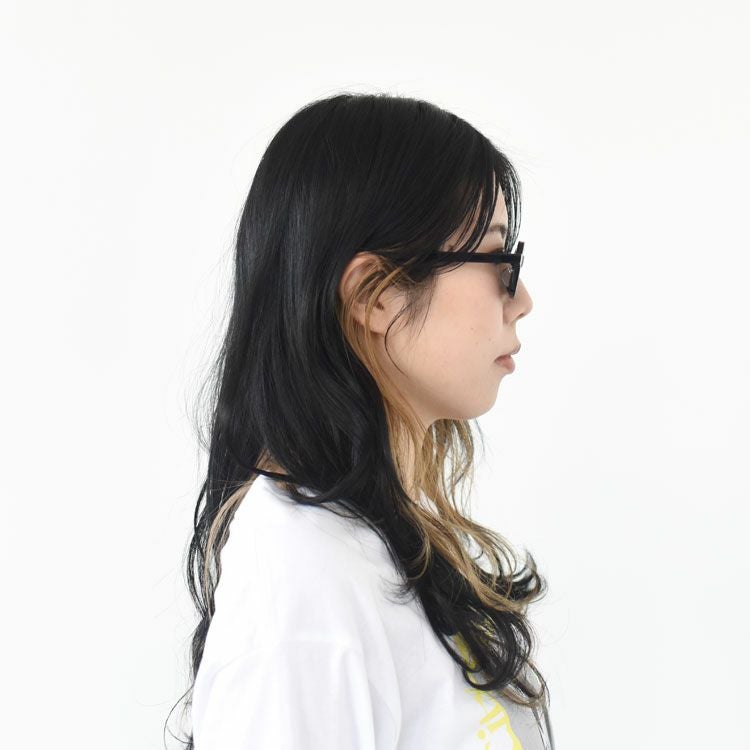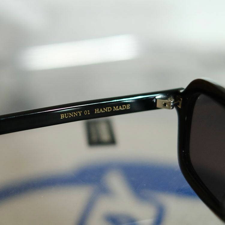 普遍的なスクエアモデルをヴィジュアルアプローチの視点から現代的に再解釈したル"BUNNY"。 ノスタルジックな雰囲気を損なわず、ヨロイの位置が目の高さに揃うよう合わせて設計されており、スクエア特有の存在感のあるエッジィな硬さは、削りの工程において丸みを持たせることで中和され、柔和さを持ち合わせた印象になり、個性を残したまま様々なスタイルに馴染みやすいモデルとなっている。 テンプルも同様にミニマルに仕上げたトータルバランスのとれた渾身の1本。