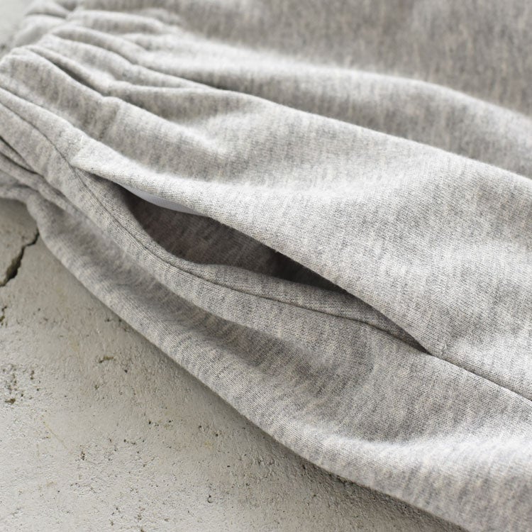 リラックス感と洗練された雰囲気を兼ね備えたドローストリングパンツは、ウエストの調整が可能な仕様とタックによる立体感が特徴で、裾のゴムでシンプルながらも存在感のあるデザインに仕上げています。ゆったりとしたワイドシルエットとフルレングスが自然な落ち感を生み、大人の抜け感を演出しつつ、体のラインを拾いにくく快適な履き心地を実現。軽やかでさらりとした肌触りに加え、通気性・吸汗性にも優れているため長時間の着用でもストレスフリーです。カットソーやシャツとのカジュアルスタイルから、同素材トップスとのセットアップまで幅広く対応。いわゆるスウェット生地であるドライフレンチテリー素材は、表面がなめらかで裏面がパイル構造になっており、吸汗性・速乾性・通気性に優れています。ポリエステル100%ならではの乾きやすさと耐久性も兼ね備え、透け感が少なくデイリーに安心して着用いただける一着です。同素材でワンピース(1-250085 / fleece N/S long OP)も展開。)