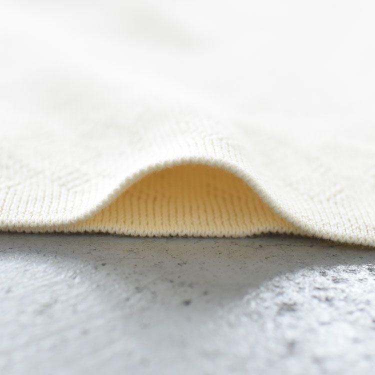 クリアな綿糸で編み立てた、柔らかく伸縮性のあるニットトップス。クラシカルなオリジナル花柄の編み地が印象的な一枚です。
