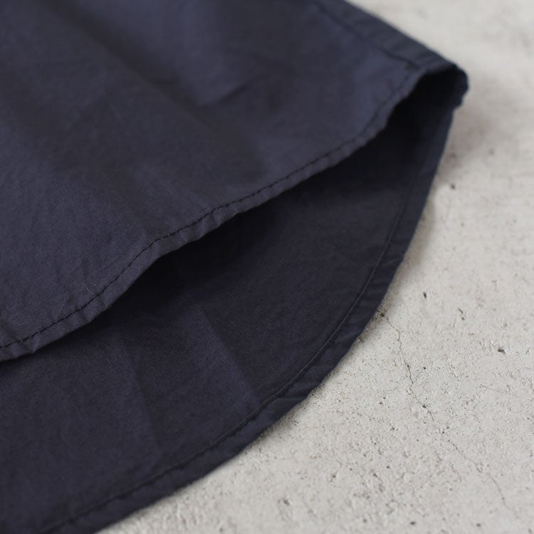 上品なタイプライター素材を使用したハーフスリーブフロントハーフフリルシャツです。スタンドネックとフロントネック部分にフリルをあしらった上品で清涼感のある1枚です。フロントフリルは華奢にデザインしていることでレイヤードがしやすいのもポイント。袖は少し長めのハーフスリーブ丈になっているので日焼け対策にもなっています。生地全体を洗い加工をすることで素材感に風合いをもたらす効果があり、布の表面の毛羽立ちや柔らかさを調整したり、見た目や着心地を向上させます。爽やかな色合いが加わり、軽やかで抜け感のある着こなしを表現していただける1枚です。