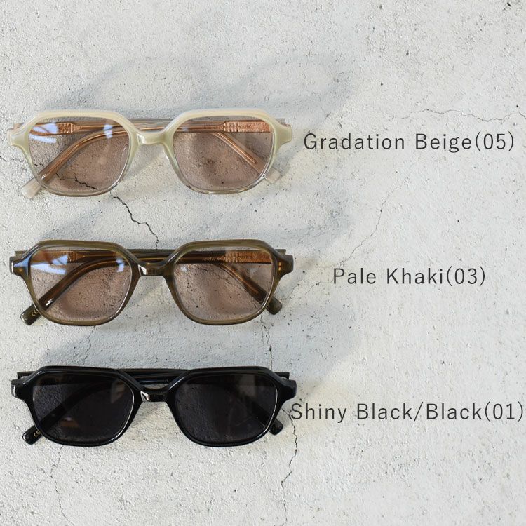 クラウンパントの雰囲気を残したレトロなシルエットが印象的なフルアセテートモデル。大振りではあるがワイズを広げすぎず顔幅に抑え、あえて極細リムで仕上げることでジャストフィットながらヴィンテージの持つタイムレスな魅力を詰め込んでいる。フレームに入れるレンズ濃度を75%程度のグレースケールの薄いカラーレンズにすることでサングラスとしてではなく眼鏡としても使いやすいフォークロアな雰囲気漂う個性的な1本に。