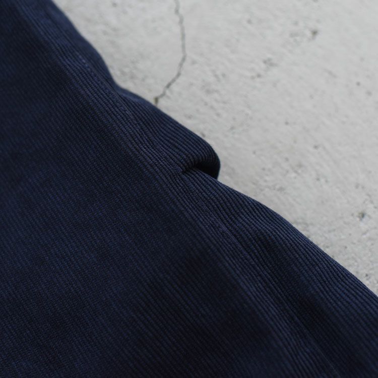 上品な表面感を意識した細コールのコーデュロイ素材。タテ糸/ヨコ糸150デニール使用により、軽やかな生地設計でありながら丈夫さも兼ね備えた生地。
