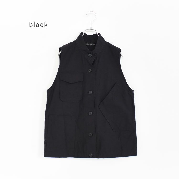 20コットンスラブを使用したワークベスト 【SALE 30%OFF】stand collar work vest スタンドカラーワークベスト/mizuiro ind(ミズイロインド)【返品交換不可】