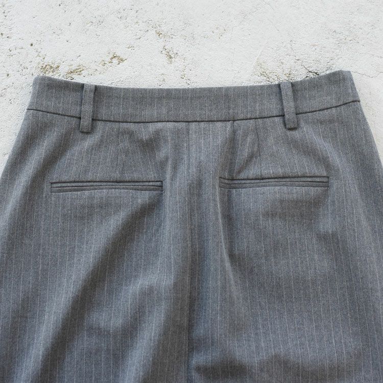 ストレッチ性のある平織りの杢調素材で仕上げたミドル丈スカート。足首が見える少し短めの丈がコーディネートを新鮮に見せてくれます。ソックス合わせで足元のレイヤードを楽しんでいただきたい一枚。肌触りが良く、しわになりにくい点も魅力。同素材のCollarless Over Jacketとセットアップで着るのもおすすめ。グレーは細ラインのストライプ素材。チャコールグレーは少しブルー味のあるなんとも言えない絶妙な色合いで、着るだけで洒落感の出るカラーです。