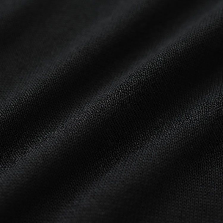 すっきりとした着丈に、袖口と裾の幅広リブがポイント。ジャストなシルエットで、ワイドなボトムスと好相性。レーヨン混のさらりとしたドライタッチ素材で、涼やかな着心地も魅力です。上品な透け感が、今季らしい軽やかなスタイルを演出します。ご自宅でのお洗濯も可能。