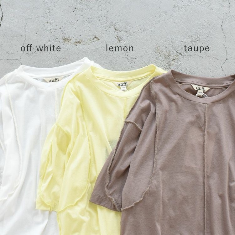 他の画像を見る unfil(アンフィル) 肩やアームホールに切り替えを入れたゆったりしたシルエットのTシャツ 【SALE 30%OFF】twisted cotton sheer jersey Tee with mohair-stitch ツイステッドコットンシアージャージーTシャツ/unfil(アンフィル)【返品交換不可】 定価 ¥ 14,300 のところ ¥ 10,010 税込 カートに入れる お気に入りに登録する LADIES セール WEB限定