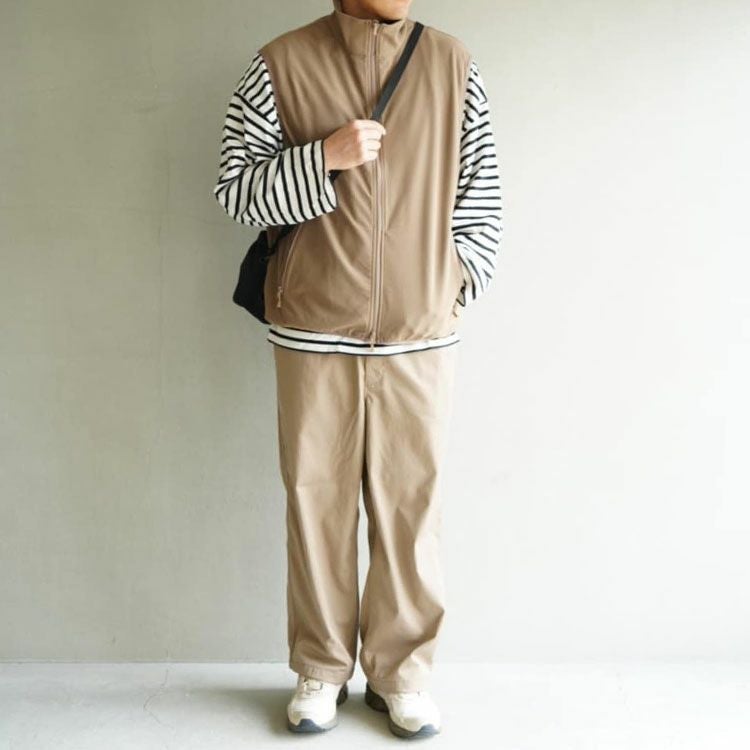 パンツの基本のアイテムを現代解釈で作成。素材の特徴に加え、ウエスト、裾にドローコードを配し釣りの際動きやすい仕様にしております。