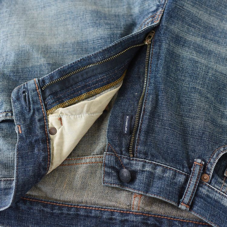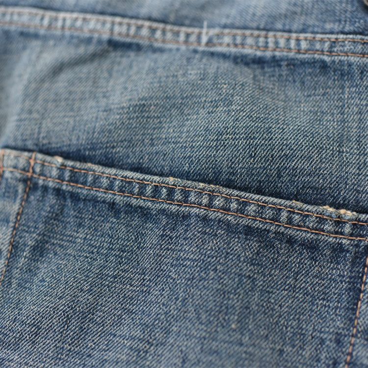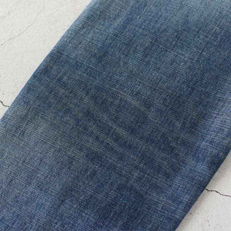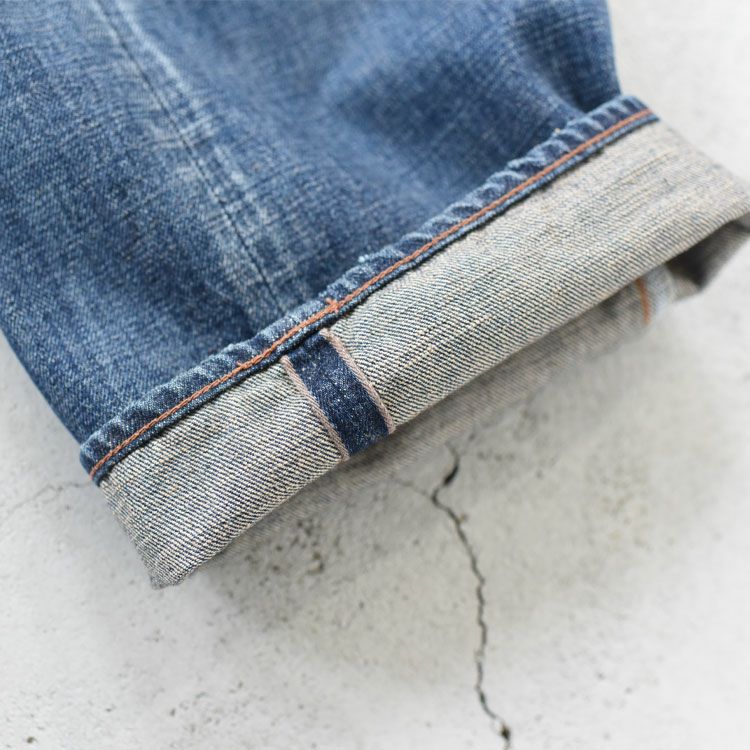 ・旧式のシャトル織機で空気を含みながらゆっくり織り上げたデニムは、生地の目が詰まらず凹凸感のある風合いで、穿いていくごとに体に馴染み、セルビッチデニム独特の色落ちが特徴。