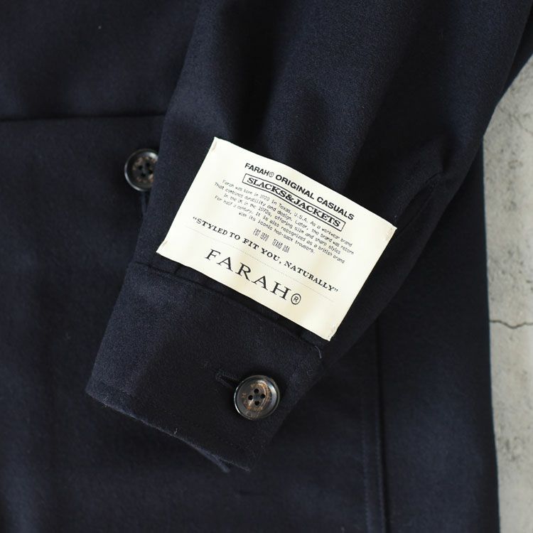 FARAH(ファーラー) FARAHは1920年にアメリカ・テキサス州で耐久性とデザイン性を兼ね備えたワークウェアブランドとして誕生しました。その後ブランドは、1970年代に英国で生まれ変わり、半世紀にわたり、スリムでシャープなスタイル、ホップサックトラウザーをアイコンに極めて英国的なブランドとして認知されています。定番のホップサックのパンツは70年代イギリスのモッズやルードボーイ、90年代のインディーミュージックのファッションなどのサブカルチャー文化に根付き、FARAHの象徴である“F”のブランドタブは、それらのカルチャーを代表するアイコンとして知られています。