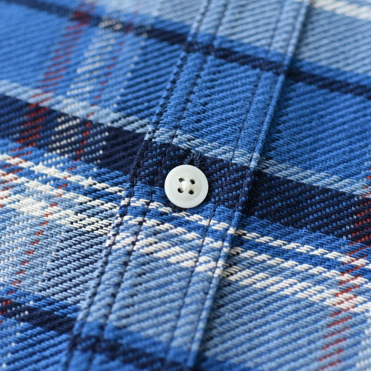 あえて裏面を表側として使用することで、アメリカンワークシャツらしい武骨さを表現し、80年代のBIGMACフランネルシャツを彷彿とさせるヴィンテージライクな雰囲気に仕上げています。
