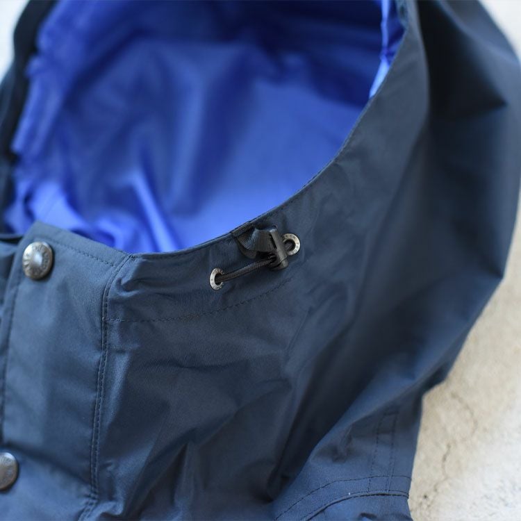 非フッ素メンブレンによる、ePE GORE-TEX PRODUCTS 2層素材を採用し、環境問題に配慮。微光沢のある50デニールのポリエステル生地がクラシカルな風合いをかもし出しています。裏地は強度のあるリップストップポリエステルを使用。袖口は面ファスナー仕様で、裾はアジャスターでフィット感の調節が可能です。コンパクトに収納でき、携行に便利なスタッフサック付き。