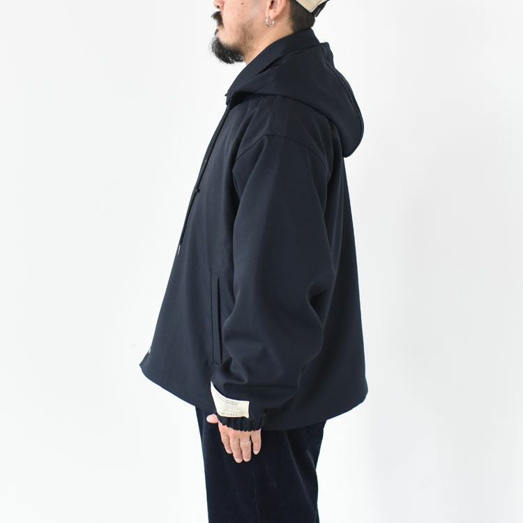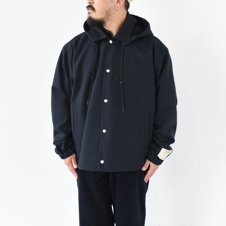 柔らかくハリのある生地感が特徴のフーデッドコートジャケット