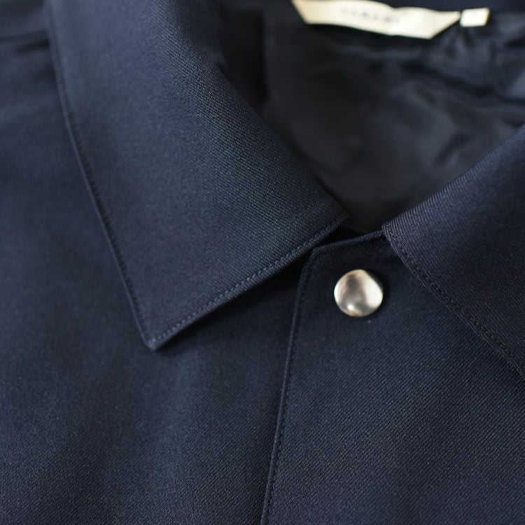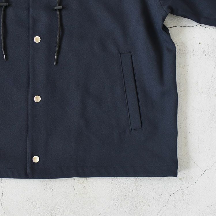 やや光沢感があり、柔らかくハリのある生地感が特徴のフーデッドコートジャケット。軽量で非常に楽に羽織ることができ、シーズンを問わずご着用いただけます。スタイリングに合わせてフードを取り外すことも可能です。