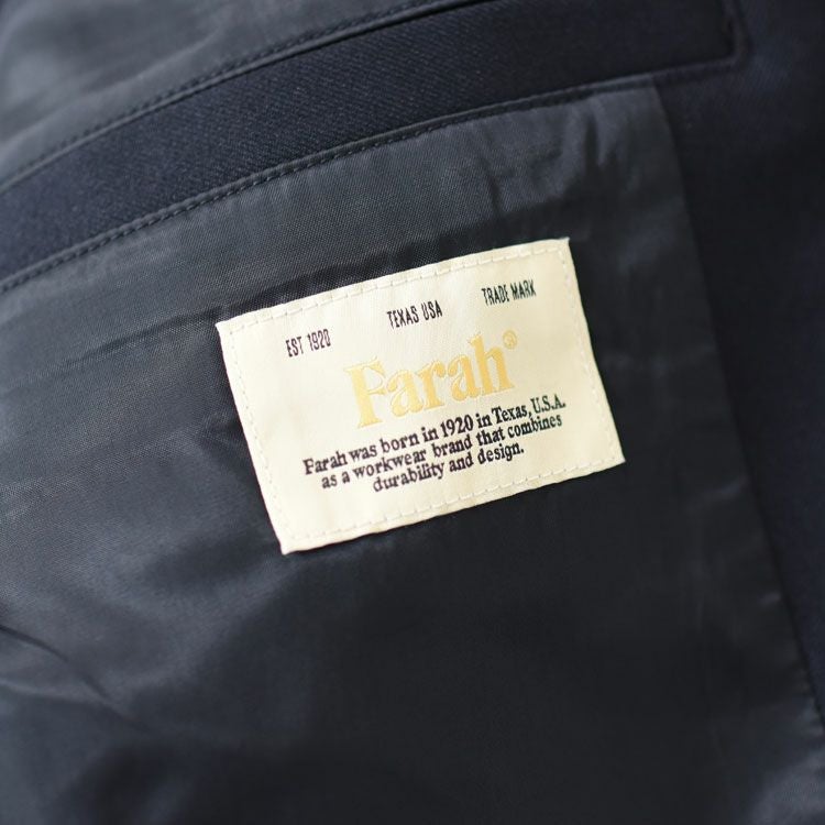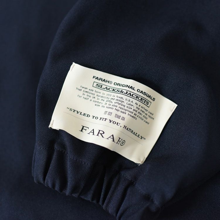 FARAH(ファーラー) FARAHは1920年にアメリカ・テキサス州で耐久性とデザイン性を兼ね備えたワークウェアブランドとして誕生しました。その後ブランドは、1970年代に英国で生まれ変わり、半世紀にわたり、スリムでシャープなスタイル、ホップサックトラウザーをアイコンに極めて英国的なブランドとして認知されています。定番のホップサックのパンツは70年代イギリスのモッズやルードボーイ、90年代のインディーミュージックのファッションなどのサブカルチャー文化に根付き、FARAHの象徴である“F”のブランドタブは、それらのカルチャーを代表するアイコンとして知られています。