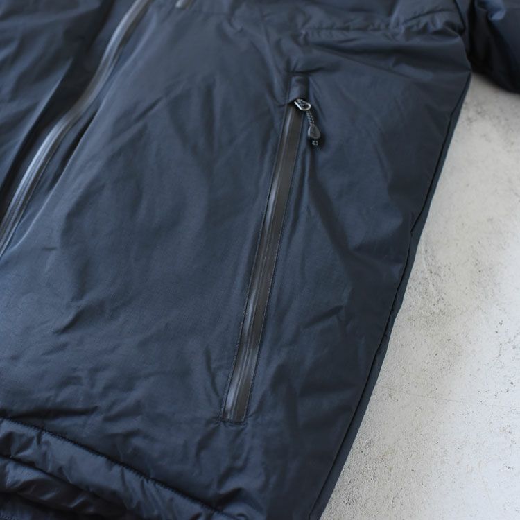 身幅や袖ぐりにゆとりを持たせ脱ぎ着もしやすく、裾にはドローコードが付属しているため、絞って丸みのあるシルエットにも対応。ポケットは手を温めてくれるハンドウォーマー仕様、手袋をしていても開けられるようストラップ付き。