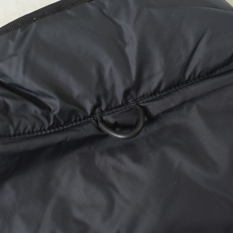 PERTEX_ QUANTUM MADE FROM NETPLUS使用。30デニールの糸で高密度に織り上げた漁網由来のリサイクルナイロン素材。軽量薄手タイプでありながら引裂き強度に優れ、フルダル糸使いによるマット感を表現。環境配慮型の撥水剤使用。