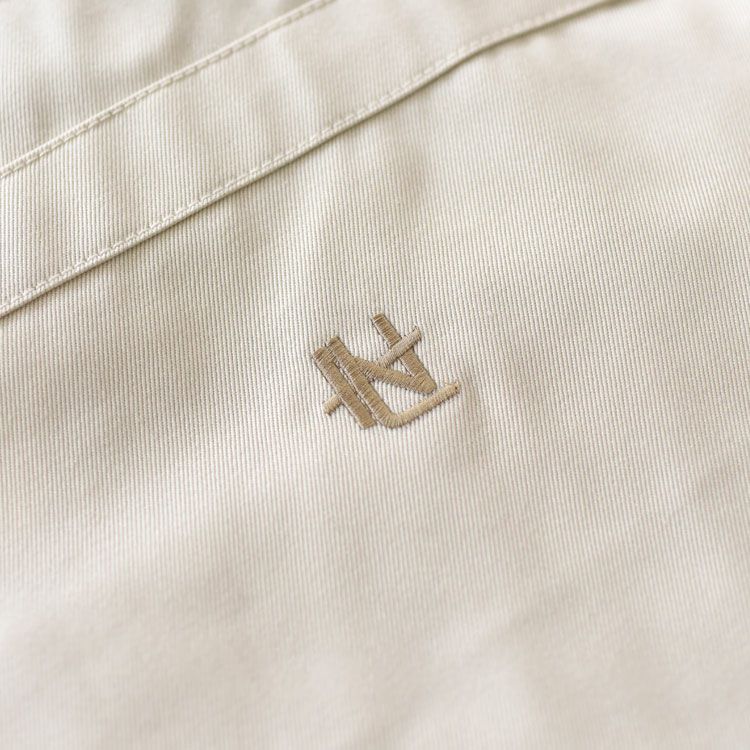 ・リサイクルポリエステルの外側をオーガニックコットンで覆った二層構造のカバーリングコアヤーンを使用し、クラシックなチノ素材を製作。コットンの肌触りに、軽量且つ耐久性があり乾きやすいという機能性をプラスしたnanamicaオリジナルのハイブリッド素材。