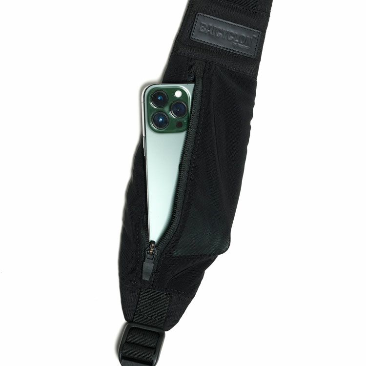 ・ストラップ部分にはスマホやカードなどが入るストレッチメッシュポケットが装備されております。