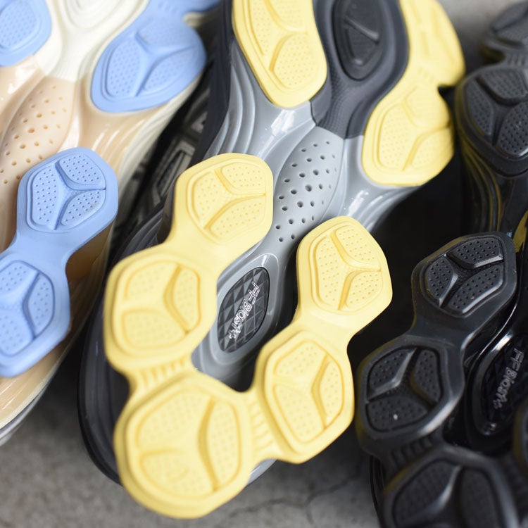 ミッドソールは、FF BLAST PLUS ECOとScutoid GELテクノロジーで形成されており、足を蹴り出す際の反発性と着地時の衝撃緩衝性を高めるための高度な設計がされている。