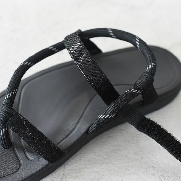 アスリートの遠征や登山のテンバでの利用を考え設計された薄型のリカバリーサンダル。1本のロープと1本のベルクロのみで足のホールドを確保したnohy(ノヘイ)。トングタイプにありがちな指間の擦れを軽減するため、指で挟み込む部分は薄く設計し、ホールド感を上げるため親指付け根部分で固定する仕様となっています。アッパー素材が極少なため、裸足感覚に近く、よりリラックスした履き心地を提供します。