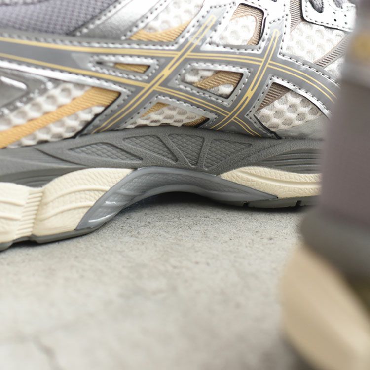 GEL-CUMULUS 16は、2014年に発売された長距離走行時のソフトなクッション性が評価されてきたランニングシューズベースのモデルです。アッパーには光沢のある人工皮革のオーバーレイ、縫い目のないパネル、オープンメッシュレイヤーを組み合わせている。この素材の組み合わせは、2010年代の先進的ランニングシューズに見られる技術的な美しさを生み出しています。ソフトなクッション性はそのままに。前足部とかかと部の2つのGELテクノロジー、FLUIDRIDE(フルイドライド)テクノロジー、FLYTEFOAM(フライトフォーム)テクノロジーを搭載し、足元の快適さをサポートします
