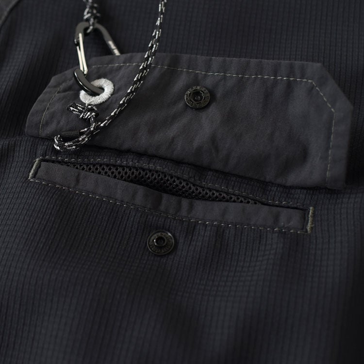 洗練されたシルエットと機能素材が融合したVENT CARDIGANは、気温の不安定な時季にも頼れる存在。and wanderらしいユーティリティディテールが満載で、ブランドのアイコン的なカラビナとリフレクターが印象的です。ノーカラー仕様でレイヤードにも最適。着丈や身幅に程よいゆとりを持たせ、アクティブなシーンにもストレスなく馴染みます。普段使いはもちろん、アウトドアやトラベルにもフィットする、頼れる一着です。