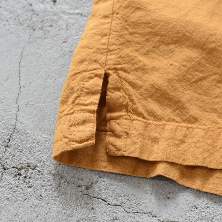素材にはコットン100%のナチュラルな生地を使用。天然素材特有のネップやムラ感があり、均一すぎない“UNEVEN(不均一)”な表情が、シンプルなデザインに奥行きを与えています。