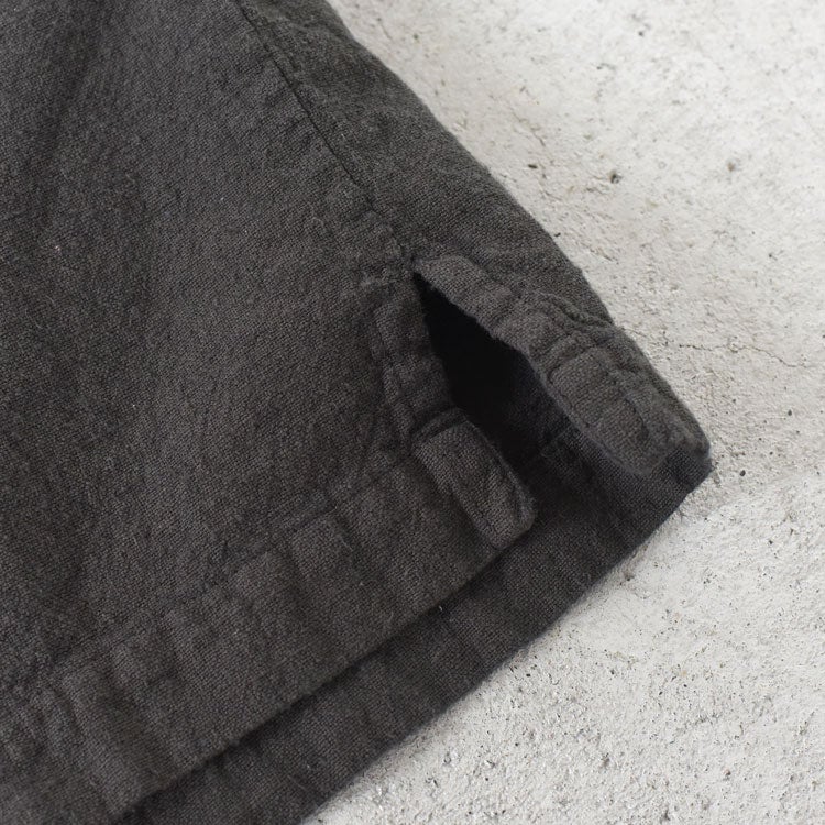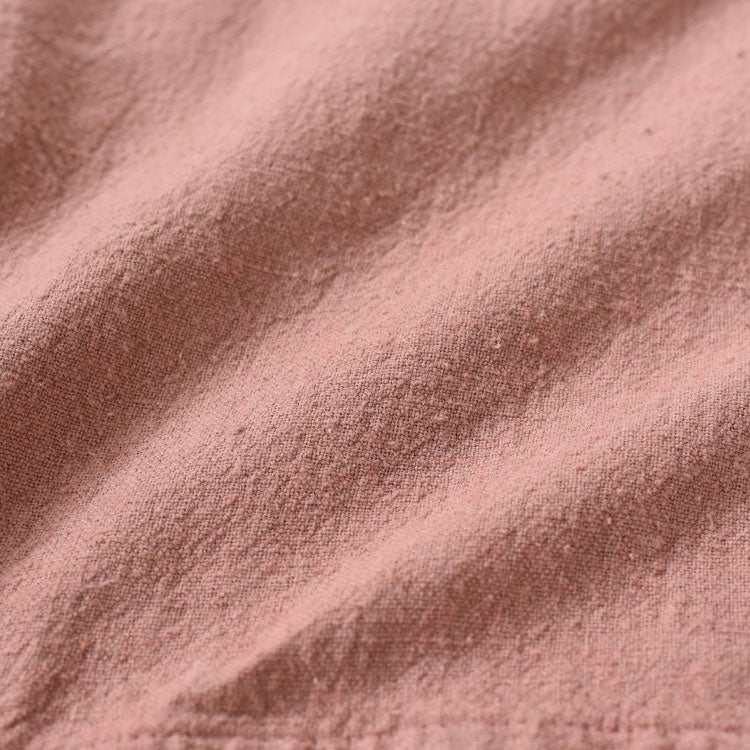 素材には、希少な手紡ぎ・手織りによって仕立てられた生地を使用。機械では表現できないムラ感や繊維の表情があり、一点一点に個体差を感じられる、まさに“唯一無二”のテクスチャーが特徴です。