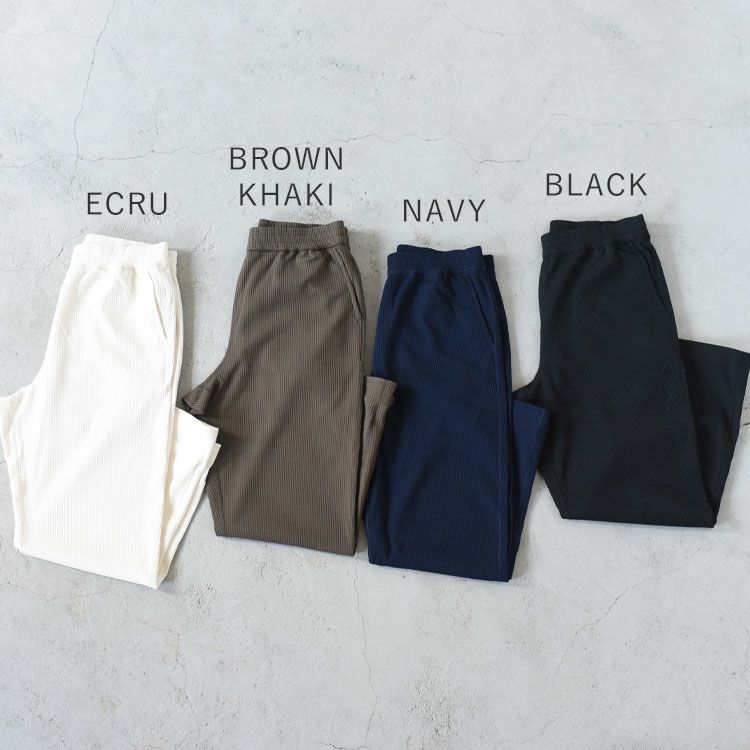 ワッフル素材を使用したサーマルイージーパンツ。シンプルながらも着用した際のサイズバランス、フィッティングにこだわりデザインしたベーシックなアイテム。