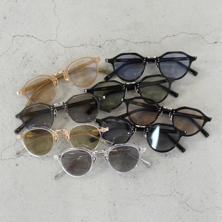 フレーム上部が角張っているのが特徴的なエッジの効いたボストンタイプ。フロントはヴィンテージモデルとしても人気なメタルとセルのコンビネーション、テンプルはシンプルなアセテートで、0カーブのミラーレンズを使用することによって、まさにクラシックかつモダンなA.D.S.R.らしいデザインです。