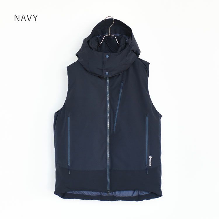 約700フィルパワーのダウンを約130g内包し、2層構造の「GORE-TEX」を採用。保温性と同時に、汎用性の高いダウンベストです。ブランドのアイコンでもある、極細のコンシールファスナーを表裏で5つ配し、様々な用途に使用可能。フロント左胸に配した大きなジッパーポケットは、ルアーケースやキャンプギア、地図などの嵩張るサイズのアイテムの収納に最適です。フードは取り外しができ、フード単体としても使用できる2WAY仕様。さらに、摩擦がかかるヒップ部位とショルダー部位にはコーデュラファブリックを使用し、耐久性を高めました。