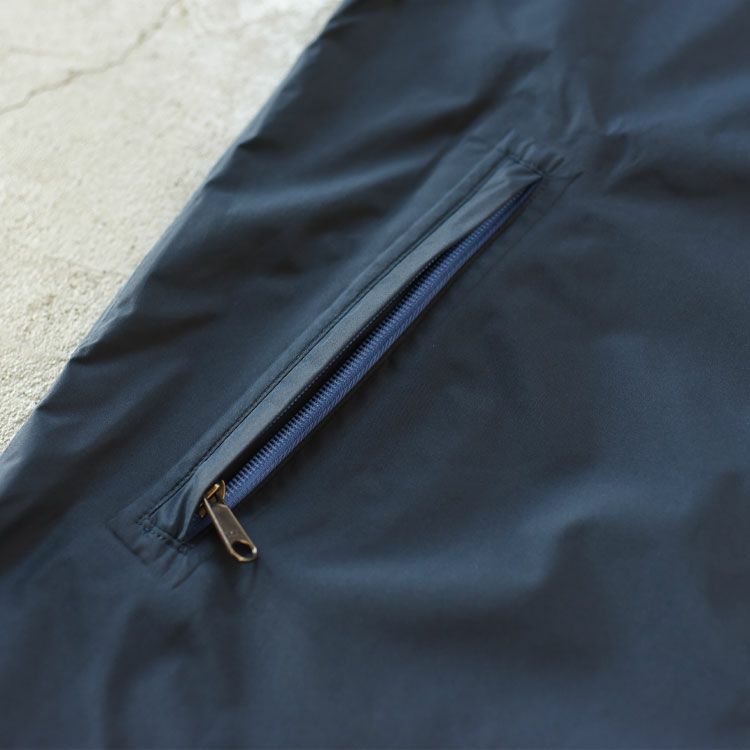 非フッ素メンブレンによる、ePE GORE-TEX PRODUCTS 2層素材を採用し、環境問題に配慮。微光沢のある50デニールのポリエステル生地がクラシカルな風合いをかもし出しています。裏地は強度のあるリップストップポリエステルを使用。袖口は面ファスナー仕様で、裾はアジャスターでフィット感の調節が可能です。コンパクトに収納でき、携行に便利なスタッフサック付き。