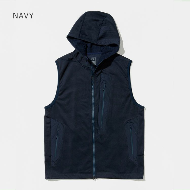 インナーとしてもアウターとしても使用可能なミリタリーテイストを取り入れ、現代的なグリットフリース素材を使用した ストレッチ性のあるフリースフード付きベスト。