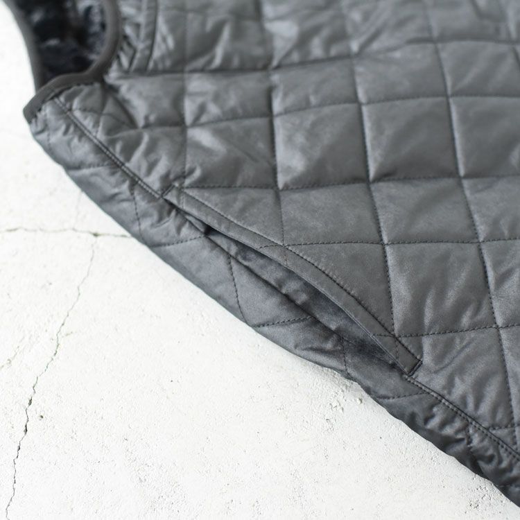 キルティングサイドのポケットは、菱形キルトのデザインを活かしたハンドウォーマーポケットとなり、シンプルなデザイン性を損なわない仕様。