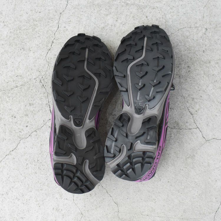 "都会的なムードを纏った進化系XT-6。ベースのブラックに、光の角度で表情が変わるプラム系イリディセントを組み合わせることで、まるで宇宙のような奥行きを演出。ソールにはグレーとブラックを織り交ぜた設計で、未来感ある印象もプラス。