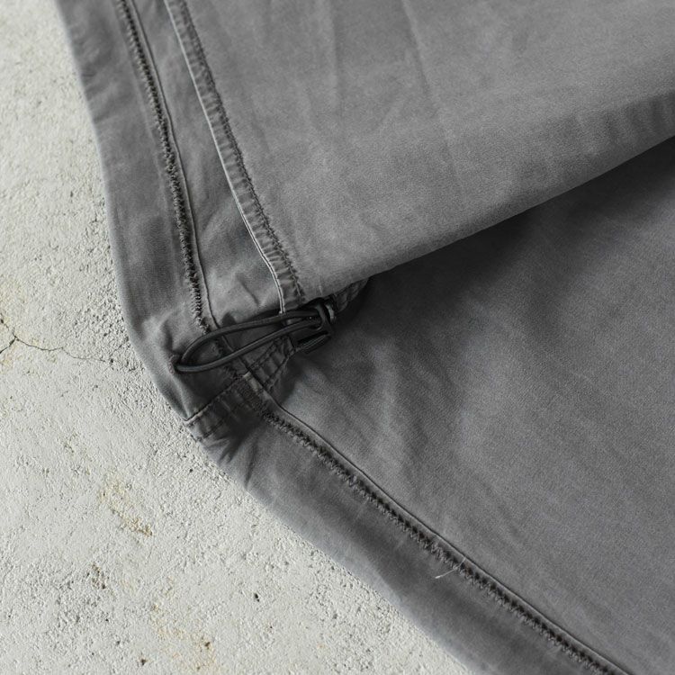 ナイロンとコットンを混紡したハイブリット素材。ストーンマスターはそこにピグメント加工を施すことで、アタリとパッカリングのある表情豊かな顔つきに仕上げています。難しいとされるナイロンへのピグメント加工ですが、高い染色技術がそれを可能にしました。
