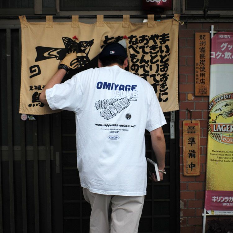 お店のライターやマッチ・ステッカーはよくもらうけど、いつでも着られるTシャツがあるなら、もっと最高。そんな想いから、勝手に僕が大好きなお店のTシャツを作って応援しちゃう企画、スーベニアシリーズ「オミヤゲクラブ」が誕生しました。 沢山は作りません。毎回作るのは1回限り、数量限定で作る地元のスーベニアTeeです。記念すべき第一回は、鳥取市内で50年続く老舗の焼き鳥屋「鳥兼」をセレクト。※洗濯乾燥で着丈/袖丈が1サイズほど縮みますメンズ着用サイズsize:XL color:WHITEMODEL DATA height:170cm weight:68kgレディース着用サイズsize:M color:WHITEMODEL DATA height:172cm