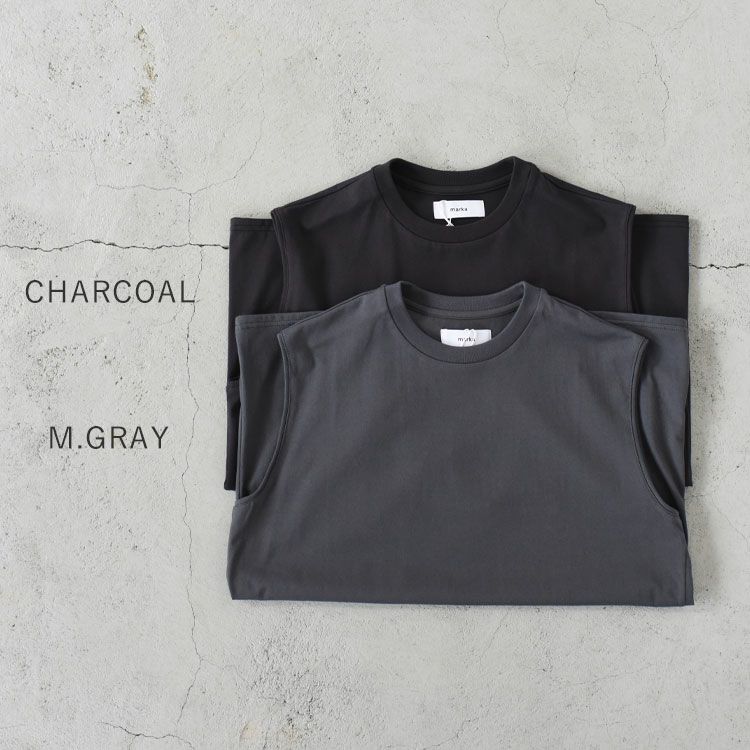 無駄を削いたクリーンでミニマムなデザインが特徴のスリーブレスTee。 レギュラーサイズのショルダー、ゆとりある身幅で形成したこのシルエットはモダンな着こなしに最適です。 インド産オーガニックコットンを使用。一般的な40番手双糸の天竺は22ゲージで編みますが、今回は26ゲージで編み、目をしっかり詰めました。度詰めならではのハリ感があり、目面が繊細に並んだ綺麗な天竺素材です。モデル着用サイズsize:2 color:CHARCOALMODEL DATA height:170cm weight:73kg