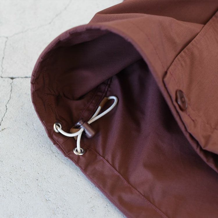 ・表地はクラシックなアウトドアウェアに採用されていたポリエステル65%、コットン35%をミックスした糸で高密度に織り上げたウェザークロスを使用。