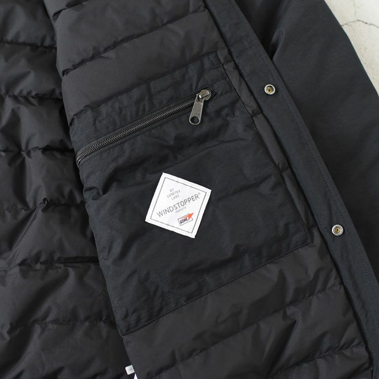 表地にははっ水加工を施した、軽くナチュラルな風合いのリサイクルタスランナイロンを使用しています。マットな質感の生地にパッカリングを効かせてスポーティ感を抑え、都市生活に馴染むデザイン感。中わたは、遠赤外線効果で自然なあたたかさをもたらすクリーンダウン光電子を封入。裏地にGORE-TEX WINDSTOPPER 2層構造を使用し、風の侵入を軽減しています。袖と裾は適度なフィット感のゴム仕様。