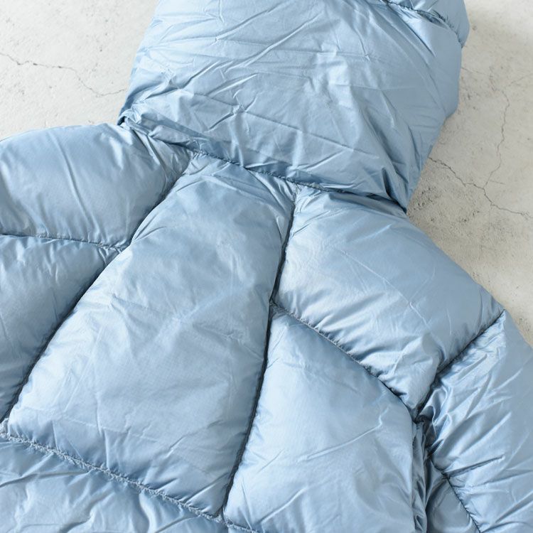 中に封入しているのは、かさ高性と軽量性を両立させた高品質な新毛のダックダウン。高度な洗浄技術によりダウン本来の機能を引き出しているCLEANDOWNです。ダウンのバッフル構造は、ダウンが背中の中心部分に集まる形状になっているため、体幹を効率的に保温。首まわりにもダウンチューブを配し、コールドスポットを少なくしています。
