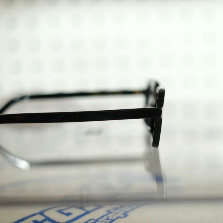 普遍的なスクエアモデルをヴィジュアルアプローチの視点から現代的に再解釈したル"BUNNY"。 ノスタルジックな雰囲気を損なわず、ヨロイの位置が目の高さに揃うよう合わせて設計されており、スクエア特有の存在感のあるエッジィな硬さは、削りの工程において丸みを持たせることで中和され、柔和さを持ち合わせた印象になり、個性を残したまま様々なスタイルに馴染みやすいモデルとなっている。 テンプルも同様にミニマルに仕上げたトータルバランスのとれた渾身の1本。