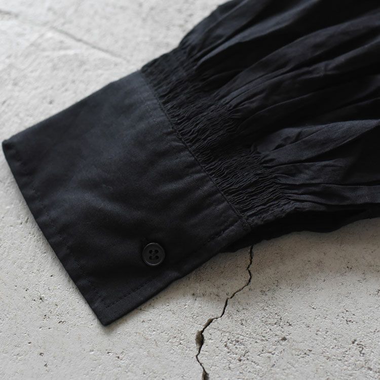 インドコットンでお作りしたボリュームのあるリボン付きブラウスです。 デザインアクセントとして、フロントにタックを飾ったデザインとcrinkleらしいボリュームのあるスタイルが、コンサバなリボン付きブラウスとは一線を画すモードなデザインになっています。