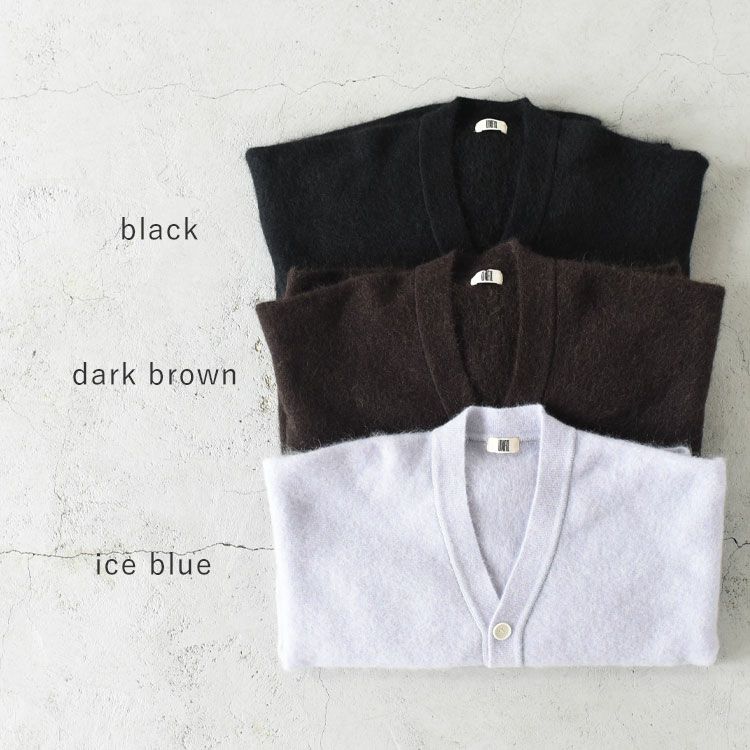 ナット素材のボタンが付いたベーシックなVネックカーディガン STRETCH SUPERKID MOHAIR CARDIGAN ストレッチスーパーキッド モヘアカーディガン/WVFL-UW113/unfil(アンフィル)