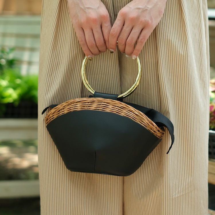 レザー×ウィッカー リングハンドバッグ/The Bagmati